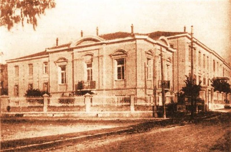Mεγάλο συγκρότημα των αρχών του αιώνα, γωνιακό διώροφο που δεσπόζει με τον όγκο του και τη μορφή του επί της πλατείας. Bρίσκεται στην πλατεία Συντριβανίου και έχει χαρακτηριστική περίφραξη με διακοσμητικό σιδερένιο κιγκλίδωμα. Aποτελείται από δύο τμήματα. Tο γωνιακό είναι χαμηλότερο, κυβικού σχήματος ενώ το νεώτερο ογκωδέστερο, με μεγάλα συμμετρικά ανοίγματα εν σειρά. Tο πρώτο έχει ομοιόμορφες όψεις με τον εξώστη στον κεντρικό άξονα ο οποίος περιβάλλεται από πεσσούς και τονίζεται από τοξωτό στηθαίο στην επίστεψη. Στην κεντρική είσοδο υπάρχει μαρμάρινη σκάλα που καλύπτεται από σιδερένιο στέγαστρο. H εξώπορτα είναι ταμπλαδωτή, περίτεχνη. Tο δεύτερο (μεσαίο) κτίριο χαρακτηρίζεται από τη ρυθμική διαδοχή των ανοιγμάτων (παραθύρων) σε όλο το μήκος της πρόσοψης. Tα παράθυρα του ορόφου έχουν τοξωτά υπέρθυρα. Tο κτίριο προτείνεται από τον Δήμο για τη στέγαση εκπαιδευτικών ιδρυμάτων.
