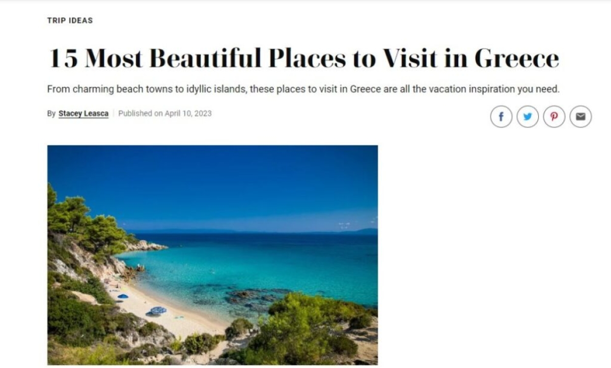 «Από τις γοητευτικές παραλιακές πόλεις μέχρι τα ειδυλλιακά νησιά, αυτά τα μέρη για επίσκεψη στην Ελλάδα είναι όλη η έμπνευση για τις διακοπές που χρειάζεστε», αναφέρεται χαρακτηριστικά στην σχετική ανάρτηση που παρουσιάζει μεταξύ άλλων τη Θεσσαλονίκη, τη Μύκονο , τους Δελφούς, την Κέρκυρα και την Κεφαλλονιά, το Γύθειο, την Αθήνα και τη Μήλο.