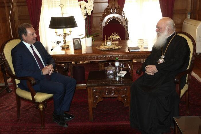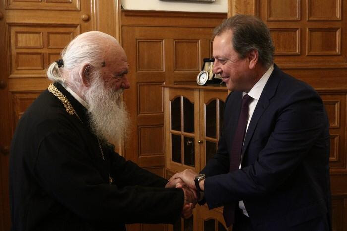 Τον Αρχιεπίσκοπο Αθηνών και πάσης Ελλάδος, κ. Ιερώνυμο επισκέφτηκε σήμερα ο Σπηλιος Λιβανος, πρώην Υπουργός Αγροτικής Ανάπτυξης και Τροφίμων, υποψήφιος βουλευτής Αιτωλοακαρνανίας της ΝΔ. Κατά τη συνάντηση στο γραφειο του Αρχιεπισκοπου στην Ιερά Σύνοδο, συζητηθηκαν θέματα κοινού ενδιαφέροντος, με έμφαση σε ζητήματα κοινωνικής αλληλεγγύης.
