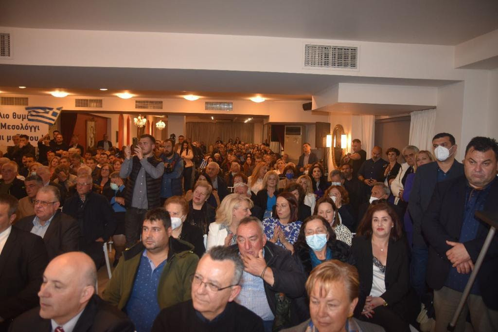 Σε μία κατάμεστη αίθουσα, με ασφυκτικά γεμάτο τον εξωτερικό προαύλιο χώρο, ένα μεγάλο πλήθος κόσμου – 1500 περίπου άτομα – αψήφησε τη συνεχή βροχή και υποδέχθηκε με ενθουσιασμό τον Σπηλιο Λιβανό με συνεχή χειροκροτήματα, συνθήματα και παλμό που θύμιζε παλιές 'ηρωικές' πολιτικές στιγμές, αναγνωρίζοντας σημαντικό έργο του π. Υπουργού για την περιοχή χτες βράδυ στο Μεσολόγγι.