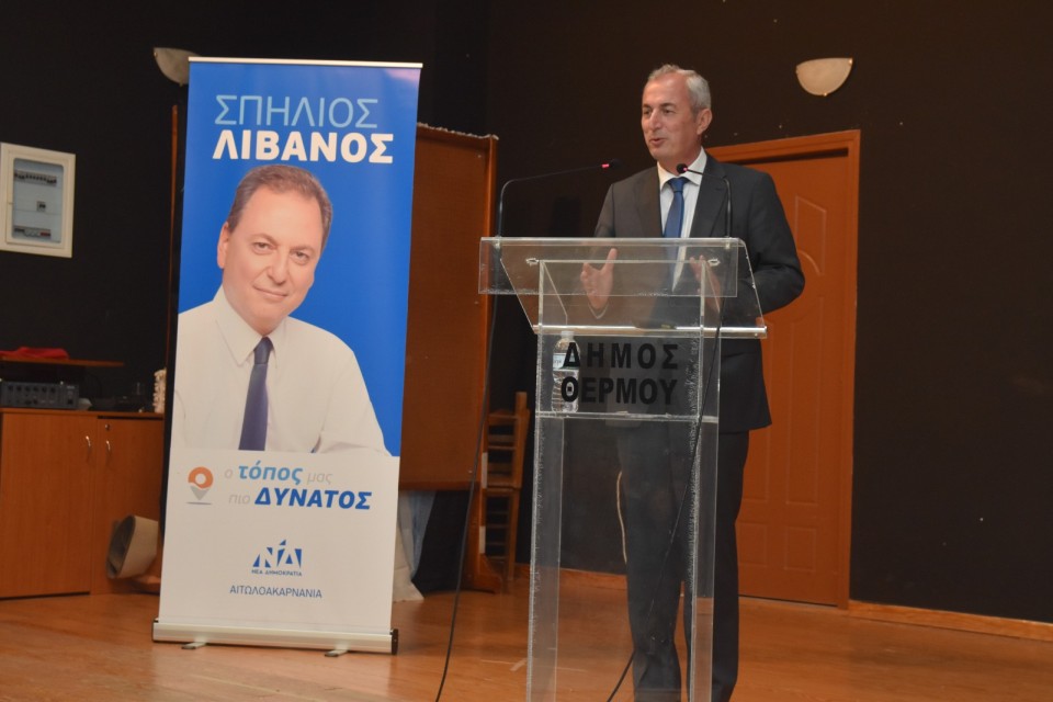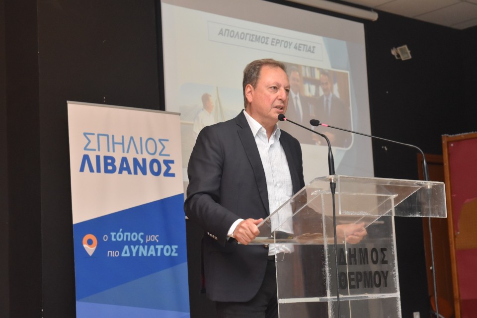 Το όραμα του για το αναπτυξιακό μέλλον του Θέρμου και της σχέσης του με την λίμνη Τριχωνίδα ανέπτυξε στο τέλος της ομιλίας του ο Σπηλιος Λιβανός.