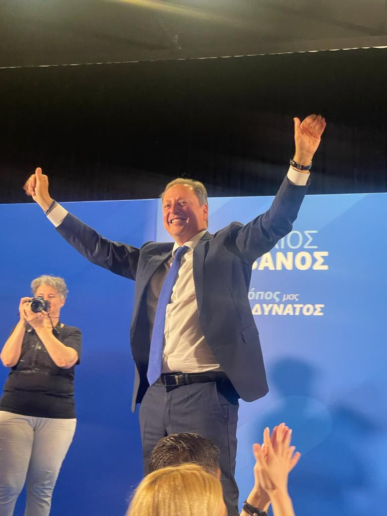Κλείνοντας, ζήτησε από το μεγαλειώδες πλήθος που τον επευφημούσε, να τον τιμήσει με την ψήφο του, να του δώσει τη Δύναμη να κάνει τον τόπο πιο Δυνατό!