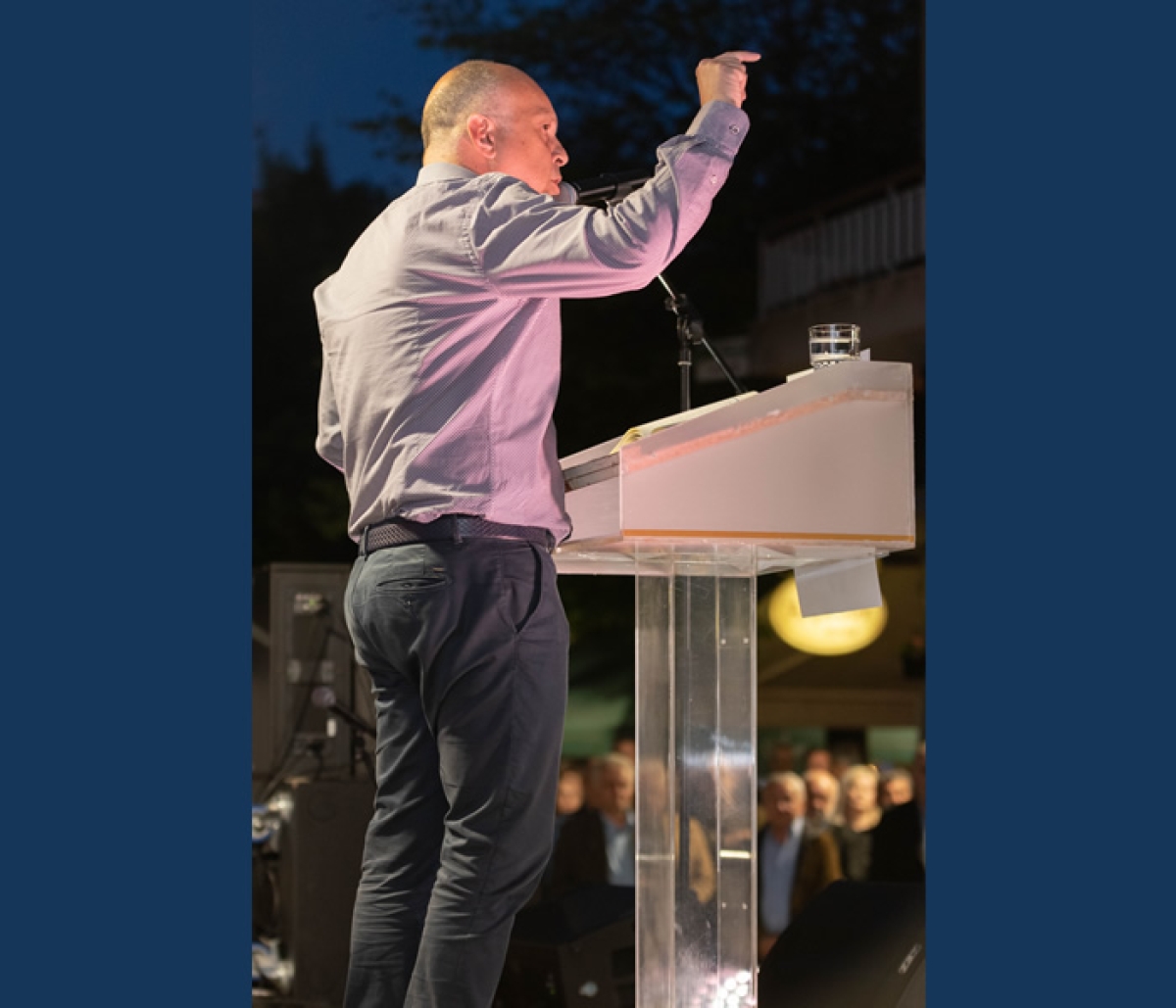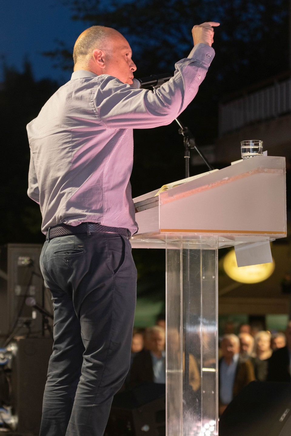 Στον πεζόδρομο Βότση συγκεντρώθηκαν πολλοί φίλοι του Σταύρου Καραγκούνη που άκουσαν μια χειμαρρώδη ομιλία και στη συνέχεια απόλαυσαν τις μουσικές του συγκροτήματος της Δανάης Παπαδοπούλου.
