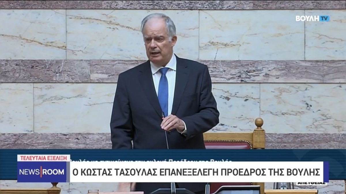 Με 270 ψήφους επανεξελέγη ο κ. Κωνσταντίνος Τασούλας Πρόεδρος της Βουλής. Την υποψηφιότητα του κ. Τασούλα στήριξαν οι κοινοβουλευτικές ομάδες ΝΔ, ΣΥΡΙΖΑ, ΠΑΣΟΚ και Ελληνικής Λύσης ενώ οι βουλευτές του ΚΚΕ δήλωσαν «παρών».