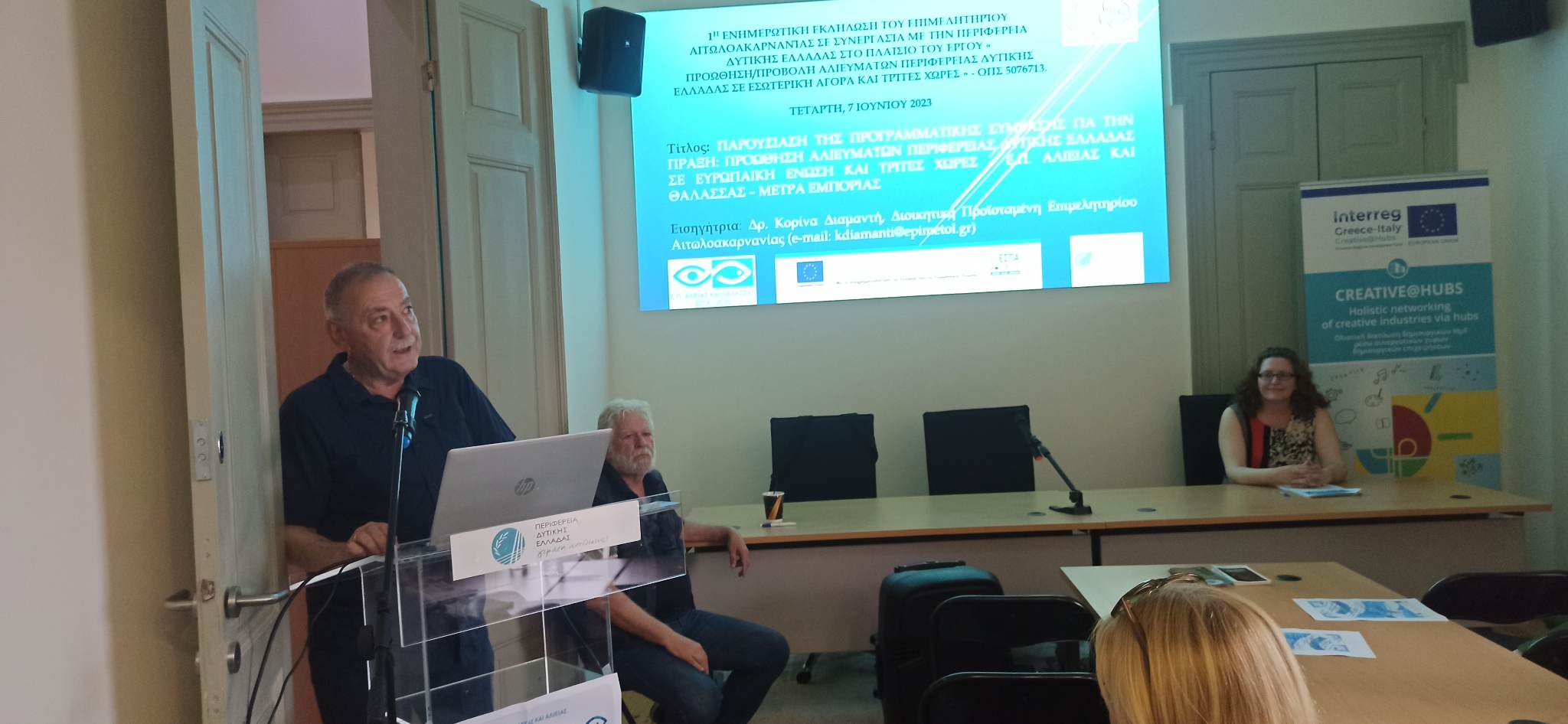 Η εκδήλωση διοργανώθηκε από το Επιμελητηριο Αιτωλοακαρνανίας σε συνεργασία με την Περιφέρεια Δυτικής Ελλάδος, στα πλαίσια έναρξης των δράσεων εξωστρέφειας του έργου «Προώθηση/προβολή αλιευμάτων Περιφέρειας Δυτικής Ελλάδας σε εσωτερική αγορά και Τρίτες Χώρες » (ΟΠΣ 5076713), και του συντονισμού συμμετοχής στην έκθεση Summer Fancy Food Show 2023.
