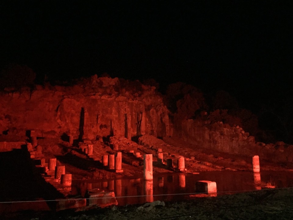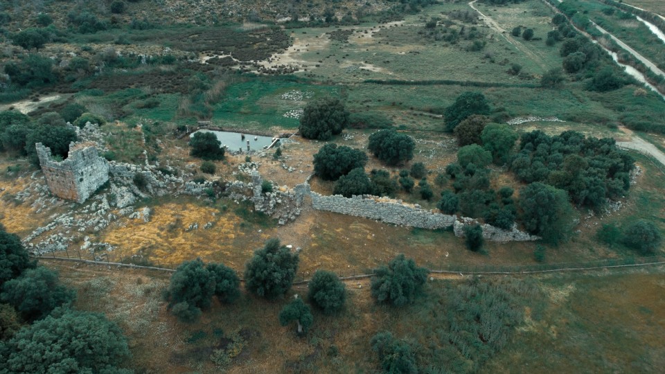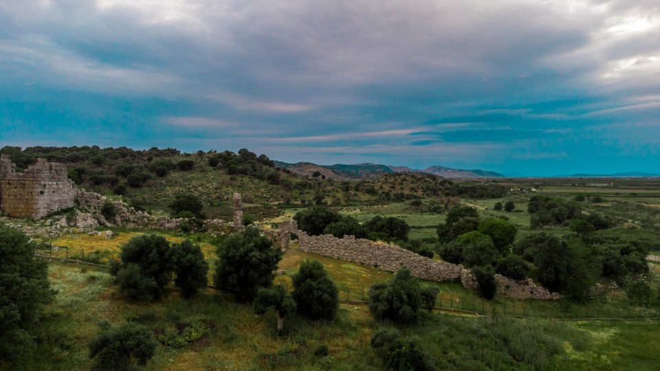Εντός της οχύρωσης και κάτω από τη σκιά των Βελανιδιών που προσδίδουν μια ιερότητα στο μέρος, είναι σήμερα ορατά τα δημόσια κτίρια της αγοράς, το βουλευτήριο, η στοά, οικοδομήματα οίκων, ο ναός, το Ηρώο, το λεγόμενο «Οικοδόμημα στο λόφο», το λουτρό του τέλους της ελληνιστικής περιόδου καθώς επίσης και το θέατρο.