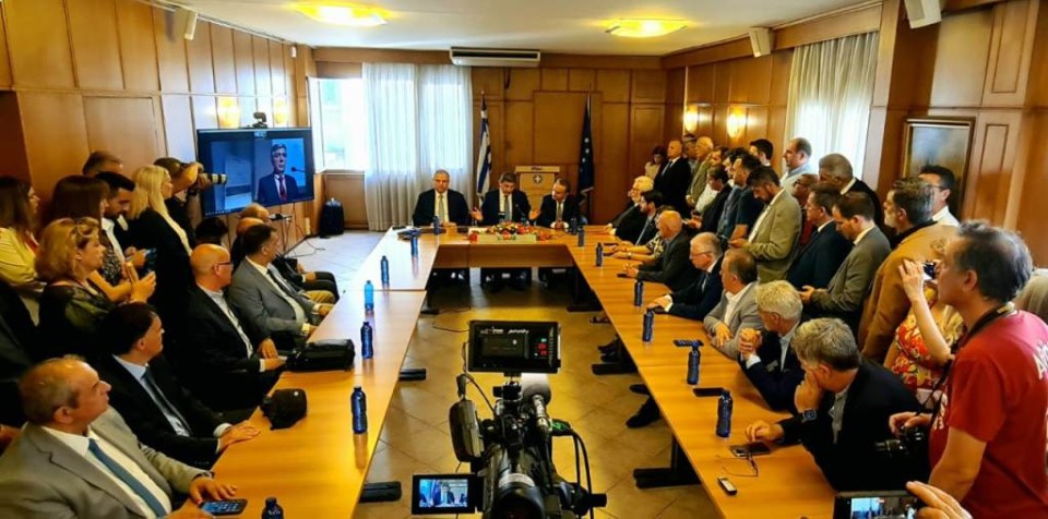 Τελετή για την ανάληψη των καθηκόντων του νέου Υπουργού Αγροτικής Ανάπτυξης και Τροφίμων, Λευτέρη Αυγενάκη, του Υφυπουργού, Διονύση Σταμενίτη και του Υφυπουργού Σταύρου Κελέτση πραγματοποιήθηκε σε διαδικτυακή σύνδεση με τον απερχόμενο Υπηρεσιακό Υπουργό, Καθηγητή Γιώργο Τσακίρη.