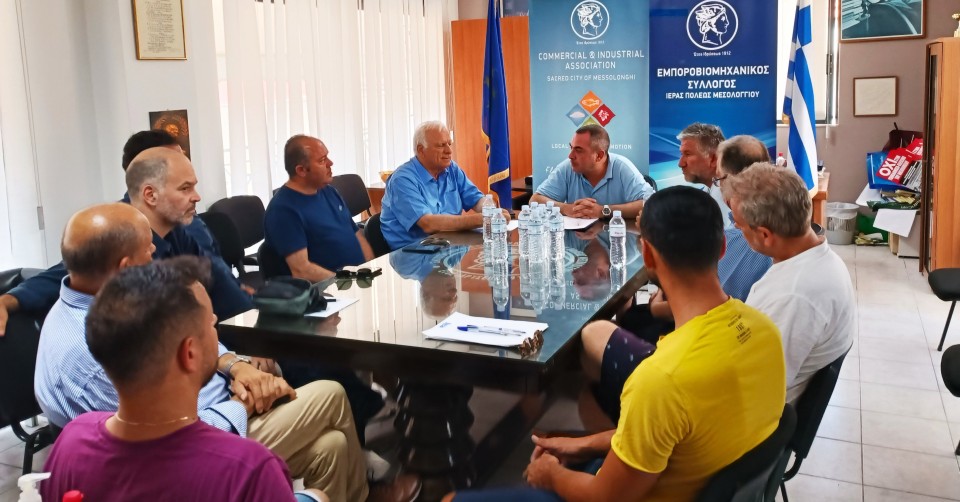 Με τον Πρόεδρο και μέλη της Διοικούσης Επιτροπής του Εμποροβιομηχανικού Συλλόγου Μεσολογγίου συναντήθηκε σήμερα, Δευτέρα 24.07.2023, αντιπροσωπεία του συνδυασμού "Ανάπτυξη για όλους" με επικεφαλής τον υποψήφιο Δήμαρχο Ι.Π. Μεσολογγίου, Θανάση Λύρο.