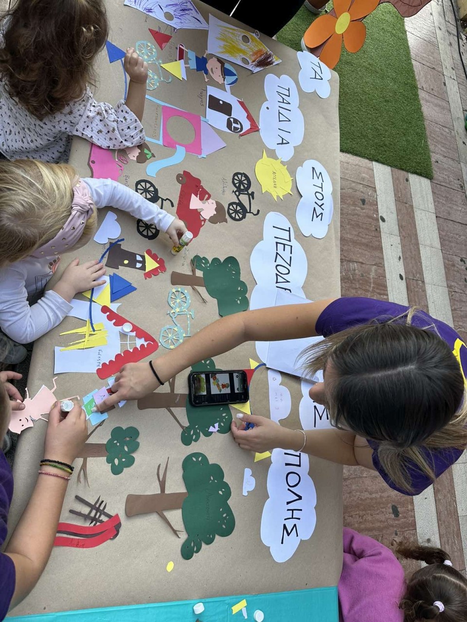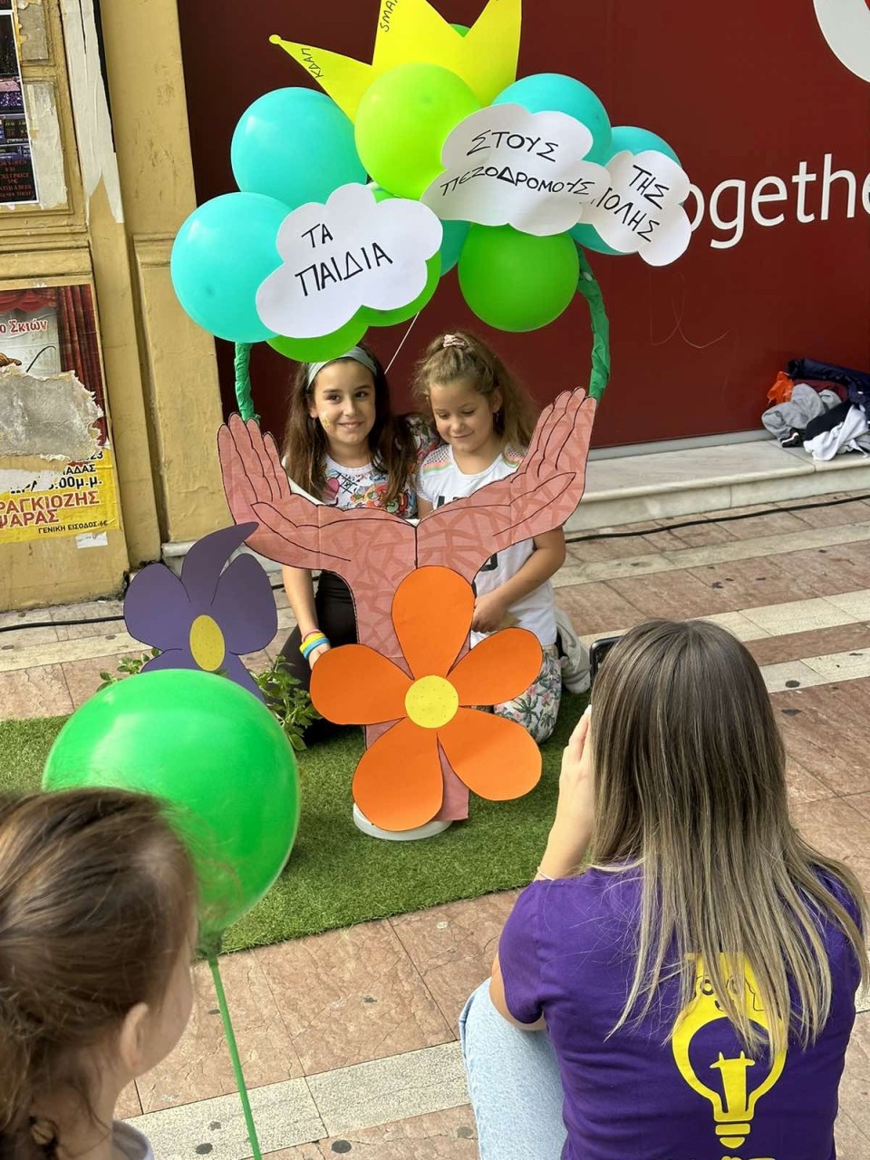 Τα παιδιά του ΚΔΑΠ Θεμέλιο συμμετείχαν στη δράση και βρίσκονταν στον πεζόδρομο Σταϊκου. Εκεί γέμισαν τον πεζόδρομο χρώματα και δημιούργησαν με την καθοδήγηση των δασκάλων τους :Δήμητρα Μπαλαούρα, Λαμπρινή Μουρτζιάπη, Ελεάννα Μαρνελάκη, Βαλέρια Στάϊκου, Φώτη Τσέπα και κυρίως με τη φαντασία τους.
