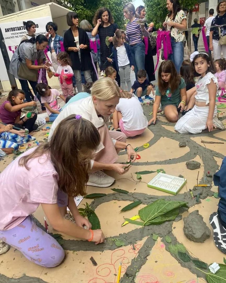 Στον πεζόδρομο της Παπαστράτου παιδιά από την Art KOINΣΕΠ Ζωγραφική / Κεραμική ARTATHEART γέμισαν «πράσινο την πόλη», σε μία δημιουργική απασχόληση με φυσικά υλικά. Υπεύθυνες εργαστηριών –Εμψυχώτριες ήταν οι: Φωτεινή Κατσίρα, Καρίνα Κοτοβά, Ματίνα Σκεπετάρη, Ειρήνη Χαντζή, Νεφέλη Πετρούλα.