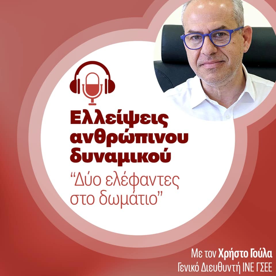 Το πρώτο podcast (https://soundcloud.com/ine-gsee/ergasia-kai-alla-chg) έχει ως τίτλο ¨Ελλείψεις ανθρώπινου δυναμικού: Δύο ελέφαντες στο δωμάτιο¨ και αναλύεται από τον Γενικό Διευθυντή του ΙΝΕ / ΓΣΕΕ κ. Χρήστο Γούλα.