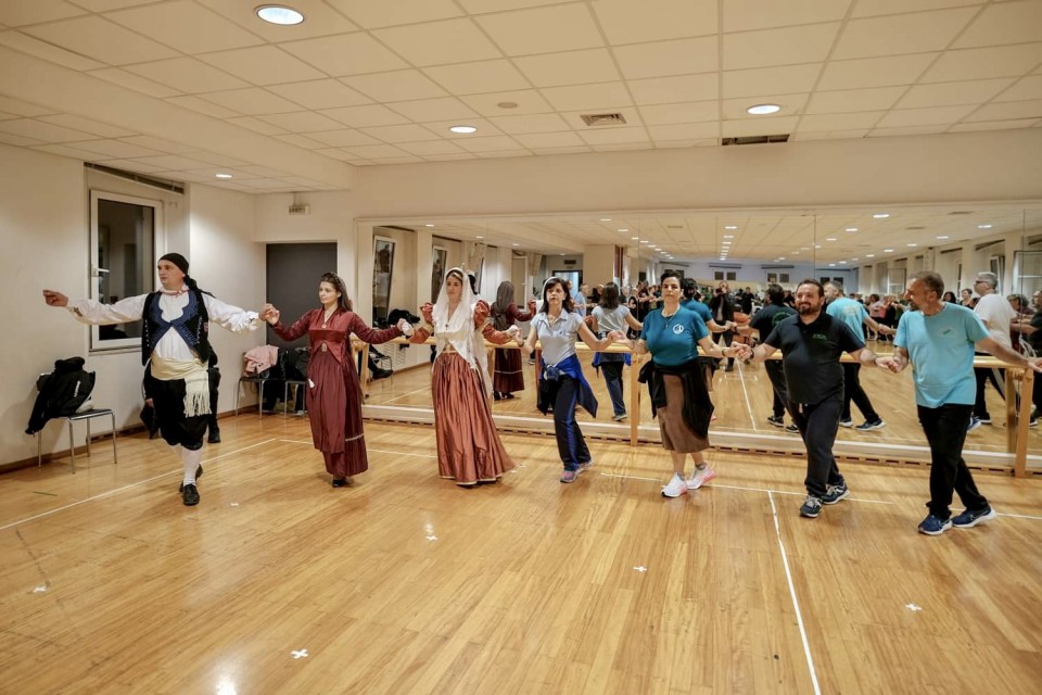 Τη δεύτερη ημέρα του σεμιναρίου η επιμορφωτική διαδικασία συνεχίστηκε δίδοντας έμφαση στην πρακτική εξάσκηση των συμμετεχόντων πάνω σε επιμέρους τοπικούς παραδοσιακούς χορούς.