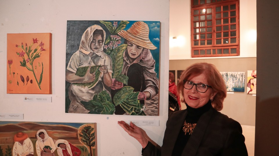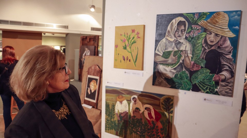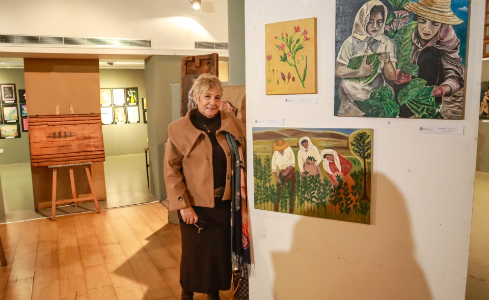 Φυσικά και οι επισκέπτες ενδιαφέρονται πάρα πολύ γιατί έχει να κάνει με την ιστορία του τόπου μας. Υπήρχαν πολλές οικογένειες που ασχολούνταν με την καλλιέργεια του καπνού για πολλά χρόνια όπως και η δική μου οικογένεια. Έχω ζήσει δηλαδή τα καλοκαίρια στο χωριό του μπαμπά μου, στη Μεγάλη Χώρα (Ζαπάντι), έχω δουλέψει στον καπνό και έχω πάρα πολλές μνήμες και κάποια στιγμή το είχα στο μυαλό μου ότι ήθελα να κάνω μια έκθεση για αυτό το θέμα, γιατί έχει να κάνει με προσωπικά βιώματα. Αλλά και να μάθουν οι νέες γενιές για τις καλλιέργειες του τόπου μας και πόσο δύσκολο ήταν για μια οικογένεια να τα βγάλει είς πέρας.