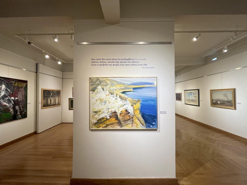Με 45 πίνακες υψηλής αισθητικής των Παρθένη, Ν. Λύτρα, Μαλέα, Παπαλουκά, Αστεριάδη, Βυζάντιο, Γουναρόπουλο, Σεμερτζίδη, Τσαρούχη, Γκίκα, Βασιλείου, Γ. Μανουσάκη, Μπαχαριάν, Μαλάμο, Πρέκα, Μιγάδη, Κοκκινίδη, Σόρογκα, μέχρι το τελευταίο απόκτημα της Συλλογής, την “Οδό Ελευθερίας” του Χρ. Γαρουφαλή, η έκθεση “αποσκοπεί στο να προσφέρει μια δυναμική και πολυδιάστατη αισθητηριακή εμπειρία του ελληνικού τόπου και της ιδιαίτερης αύρας του…”.