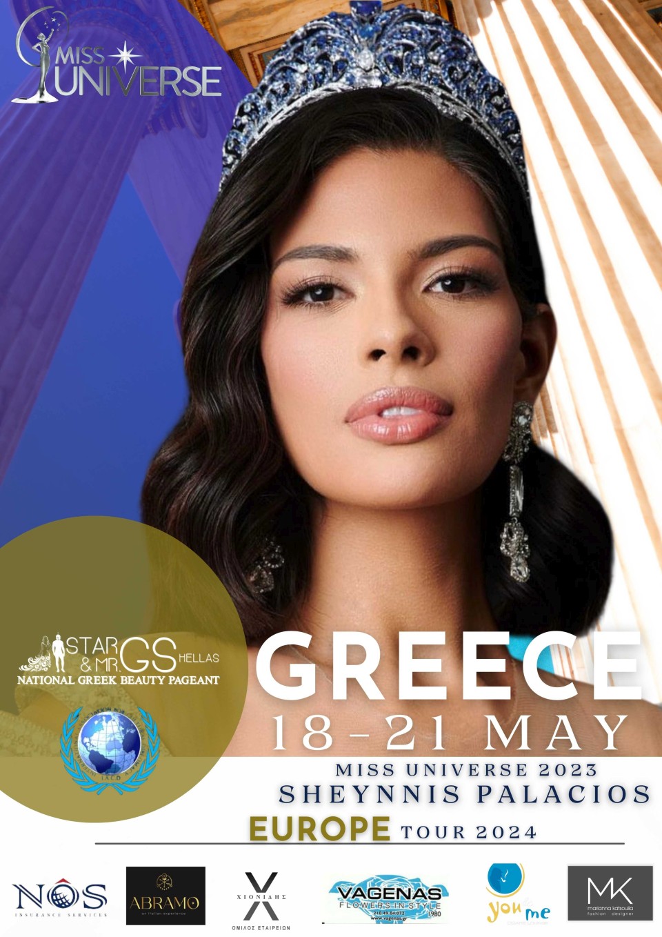 Δεύτερη φορά τώρα στα πλαίσια της παγκόσμιας περιοδείας, που κάνει ο οργανισμός MISS UNIVERSE και συγκεκριμένα στην Ευρώπη, η Ελλάδα επιλέχθηκε μέσω του εθνικού θεσμού ομορφιάς GS HELLAS να είναι μια από τις χώρες, που θα φιλοξενήσουν το επιτελείο και τη διοίκηση του MISS UNIVERSE, μαζί με την διεθνή πρέσβειρα ομορφιάς, την Sheynnis Palacios, η οποία είναι η ενεργή ΜΙΣ ΥΦΗΛΙΟΣ (MISS UNIVERSE 2023).