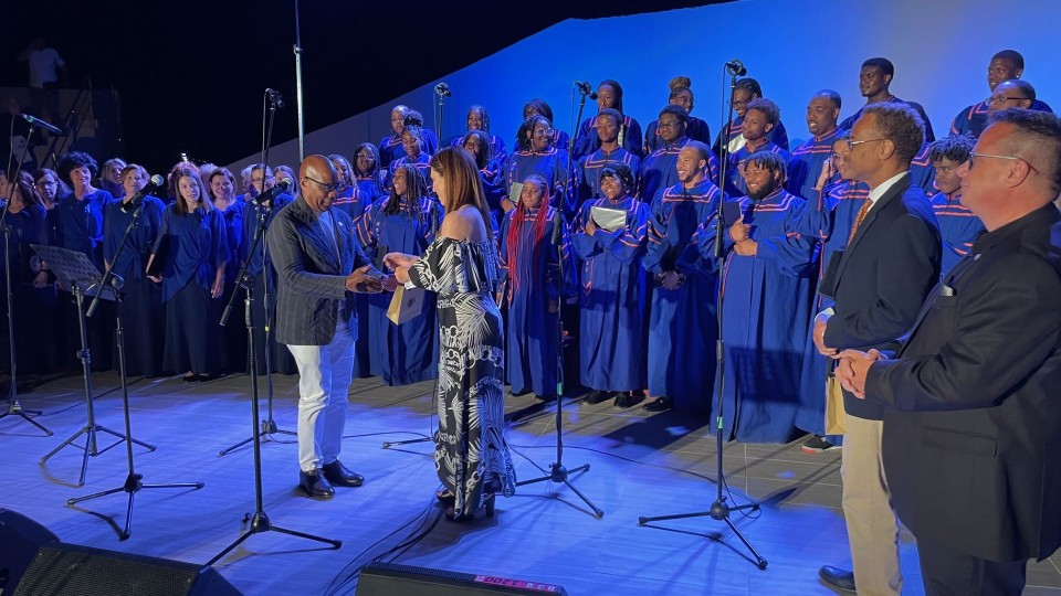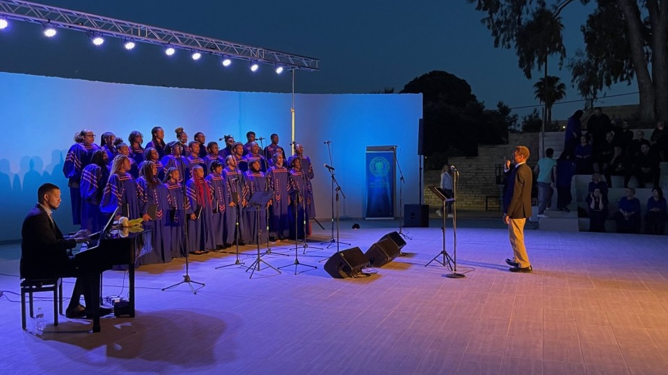 Η Δημοτική Χορωδία της πόλης μας, υπό τη διεύθυνση του Καλλιτεχνικού Διευθυντή της κου Σπύρου Χολέβα, έδωσε το μουσικό έναυσμα αποδίδοντας γνωστά και αγαπημένα μουσικά κομμάτια. Στη συνέχεια, ακολούθησε το παγκοσμίου φήμης χορωδιακό σύνολο του Morgan State University, υπό τη διεύθυνση του Eric Conway, Πρόεδρο του Τμήματος Καλών και Παραστατικών Τεχνών του αμερικανικού πανεπιστημίου. Με επιλογές που κυμαίνονταν από Gospel, Spirituals έως και σύγχρονα τραγούδια, τα 28 μέλη της χορωδίας πραγματικά συνεπήραν το κοινό που συμμετείχε με ενθουσιασμό, χτυπώντας ρυθμικά τα χέρια και τραγουδώντας.