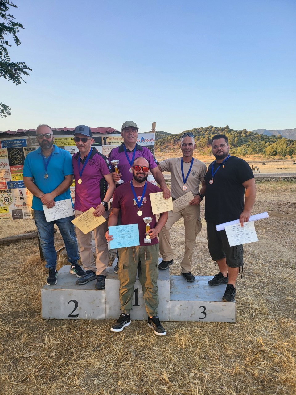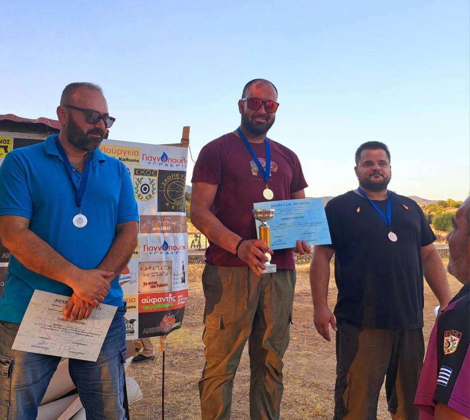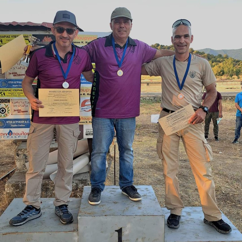 Στα ανοιχτά σκοπευτικά ο Λαμπρακόπουλος Παναγιώτης πήρε το χρυσό μετάλλιο, ο Σιαπλαούρας Δημήτρης το ασημένιο μετάλλιο και ο Φιλόπουλος Μιχάλης με το χάλκινο.