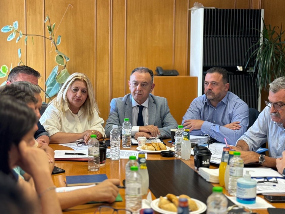 Ευρεία σύσκεψη εργασίας, υπό τον υφυπουργό Αγροτικής Ανάπτυξης και Τροφίμων, Χρήστο Κέλλα και τον ΓΓ Αγροτικής Ανάπτυξης και Τροφίμων Γιώργο Στρατάκο, που μετέβησαν στα Τρίκαλα, μετά από εντολή του ΥπΑΑΤ, Κώστα Τσιάρα, πραγματοποιήθηκε στα γραφεία της Π.Ε. Τρικάλων, προκειμένου να εξειδικευτούν τα μέτρα για την εκρίζωση της νόσου της πανώλης που εμφανίστηκε σε εκτροφή αιγοπροβάτων στη Δημοτική Ενότητα Καλαμπάκας, του Δήμου Μετεώρων.