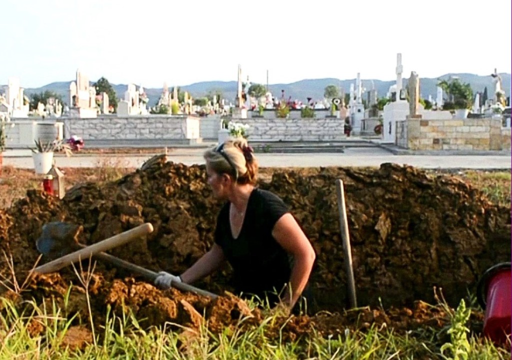 Βρισκόμασταν σε ένα απέραντο τοπίο νεκροταφείου. Οι δυο γυναίκες αναφέρουν στο ντοκιμαντέρ ότι το νεκροταφείο Αγρινίου είναι το δεύτερο ή τρίτο μεγαλύτερο της χώρας. Είναι πράγματι ένα τεράστιο νεκροταφείο, σχεδόν αχανές. Δούλευαν μαζί για περισσότερο από δέκα χρόνια.