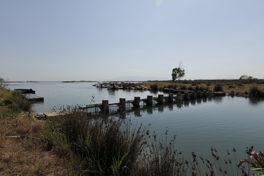 Φθάνοντας πια στο τέλος του ταξιδιού, η μυρωδιά του ιωδίου αλλά και της θαλασσινής αύρας του Ιονίου, μπλέκονται με το χώμα, την κοπριά από τα λιγοστά οικόσιτα κοπάδια τα οποία βρίσκονται διάσπαρτα στις ατέλειωτες ευθείες των δρόμων αριστερά και δεξιά του ποταμού και της υγρασίας από τα ποτισμένα χωράφια. Το νερό μπλέκει διαρκώς στην εικόνα με τις στενές λωρίδες γης που το οριοθετούν. Η αντανάκλαση του ουρανού στα λεία σαν καθρέφτες λιμνάζοντα ύδατα, διπλασιάζουν τον ορίζοντα και τα χρώματά του.