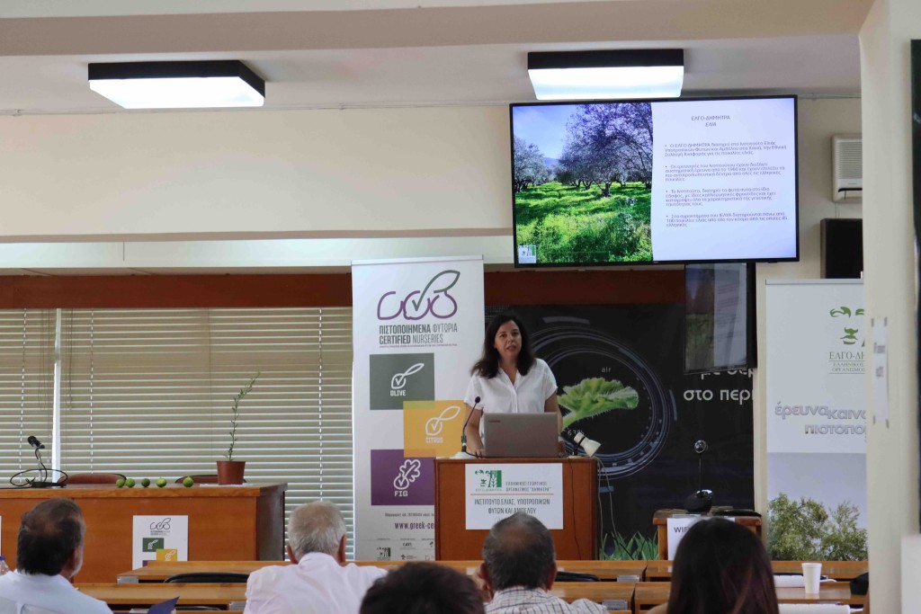 Στόχος της ενημερωτικής εκδήλωσης ήταν να ενημερωθούν οι φυτωριούχοι, παραγωγοί και το ευρύ κοινό για το Έργο “ΠΙΣΤΟΠΟΙΗΜΕΝΑ ΦΥΤΩΡΙΑ” και για τις εξελίξεις στο πολλαπλασιαστικό υλικό στην καλλιέργεια της ελιάς, των εσπεριδοειδών και του αβοκάντο. Ο Δρ. Γεώργιος Κουμπούρης, υπεύθυνος του εργαστηρίου Ελαιοκομίας του ΕΛΓΟ-ΔΗΜΗΤΡΑ, ανέπτυξε τους στόχους του έργου “ΠΙΣΤΟΠΟΙΗΜΕΝΑ ΦΥΤΩΡΙΑ” και την ανάγκη δημιουργίας μίας ολοκληρωμένης αλυσίδας παραγωγής πολλαπλασιαστικού υλικού στις καλλιέργειες, ώστε να εξασφαλίζεται η ιχνηλασιμότητα, η ποικιλιακή γνησιότητα και η φυτοϋγεία τους. Ο Δρ. Βασίλειος Ζιώγας, υπεύθυνος του εργαστηρίου Εσπεριδοειδών του ΕΛΓΟ-ΔΗΜΗΤΡΑ, παρουσίασε την υφιστάμενη κατάσταση αναφορικά με το πολλαπλασιαστικό υλικό των εσπεριδοειδών και τις νέες τάσεις στα είδη των εσπεριδοειδών. Η Δρ. Ιωαννα Μανωλικάκη, συνεργάτης του εργαστηρίου Ελαιοκομίας του ΕΛΓΟ-ΔΗΜΗΤΡΑ, παρουσίασε τη σημαντική πρόοδο που έχει επιτευχθεί στην παραγωγή πιστοποιημένου πολλαπλασιαστικού υλικού ελιάς και την ιδιαίτερη σημασία του στην αλυσίδα παραγωγής. Η Δρ. Θηρεσία-Τερέζα Τζατζάνη, υπεύθυνη του εργαστηρίου Υποτροπικών Φυτών του ΕΛΓΟ-ΔΗΜΗΤΡΑ, αναφέρθηκε στις πιο επιτυχημένες τεχνικές πολλαπλασιασμού, καθώς και στην εξέλιξη παραγωγής πιστοποιημένου πολλαπλασιαστικού υλικού, στην καλλιέργεια αβοκάντο. Ο κ. Σωτήριος Σαλής, Πρόεδρος της Ένωσης Φυτωριούχων Ελλάδος, ανέπτυξε μία διαδραστική συζήτηση για τις ανάγκες και προοπτικές των φυτωριακών επιχειρήσεων με τη συμμετοχή των φορέων του Έργου, με συμμετοχή από τη Δρ. Ελισάβετ Χατζηβασιλείου (Γεωπονικό Πανεπιστήμιο Αθηνών), την κ. Αικατερίνη Μιστακίδου (Εθνική Διεπαγγελματική Οργάνωση Επιτραπέζιας Ελιάς ΔΟΕΠΕΛ), τον κ. Γεώργιο Πάγκαλο (Φυτώρια Πάγκαλος), τον Δρ. Γεώργιο Κουμπούρη, τον Δρ. Ανδρέα Ντούλη, τον Δρ. Βασίλειο Γκισάκη (ΕΛΓΟ-ΔΗΜΗΤΡΑ), τον κ. Μιχαήλ Πλατή (Αγροαναπτυξιακή), τη Δρ. Χριστίνα Βαρβέρη (Μπενάκειο Φυτοπαθολογικό Ινστιτούτο) καθώς και του κοινού. Η εκδήλωση έλαβε τέλος με κοινή αποδοχή όλων των συμμετεχόντων για την αναγκαιότητα πιστοποίησης του πολλαπλασιαστικού υλικού, ώστε να διασφαλιστούν τα ποιοτικά χαρακτηριστικά, η απόδοση της παραγωγής, το φυτικό κεφάλαιο και το αγροτικό εισόδημα.