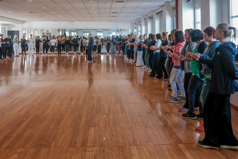 Τη δεύτερη ημέρα του σεμιναρίου η επιμορφωτική διαδικασία συνεχίστηκε δίδοντας έμφαση στην πρακτική εξάσκηση των συμμετεχόντων πάνω σε επιμέρους τοπικούς παραδοσιακούς χορούς.