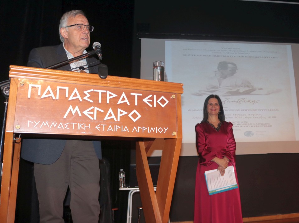 Πραγματοποιήθηκε στο Αγρίνιο, με σημαντική επιτυχία, το Σάββατο 30 Νοεμβρίου 2024, η Επιστημονική Ημερίδα «Καζαντζάκης. Ο Παγκόσμιος Κρητικός Συγγραφέας». Η Ημερίδα συνδιοργανώθηκε από το 2ο Γυμνάσιο Αγρινίου και τη Διεθνή Εταιρεία Φίλων Νίκου Καζαντζάκη υπό την αιγίδα του Ιδρύματος Πολιτισμού της Ιεράς Μητροπόλεως Αιτωλίας και Ακαρνανίας «Άγιος Ευγένιος ο Αιτωλός».