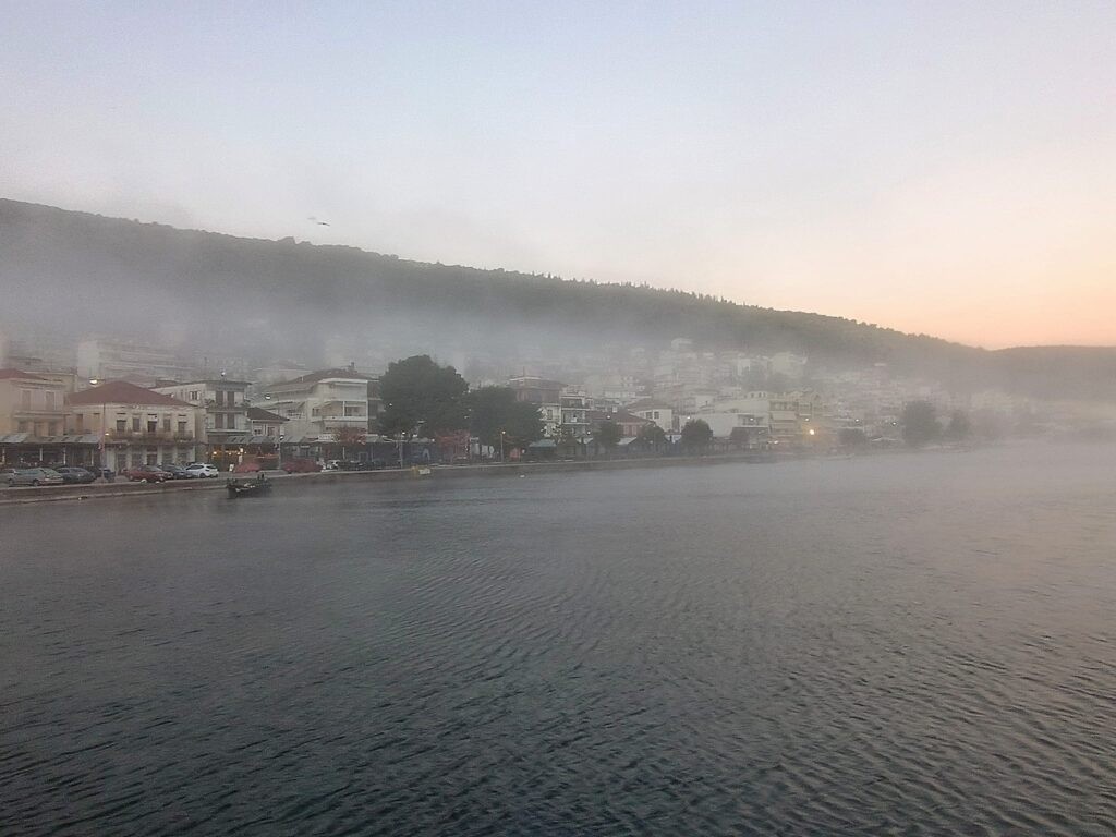 Το «πέπλο» της ομίχλης «σκεπάζει» τα σπίτια της πόλης μέχρι τα νερά του Αμβρακικού κόλπου.