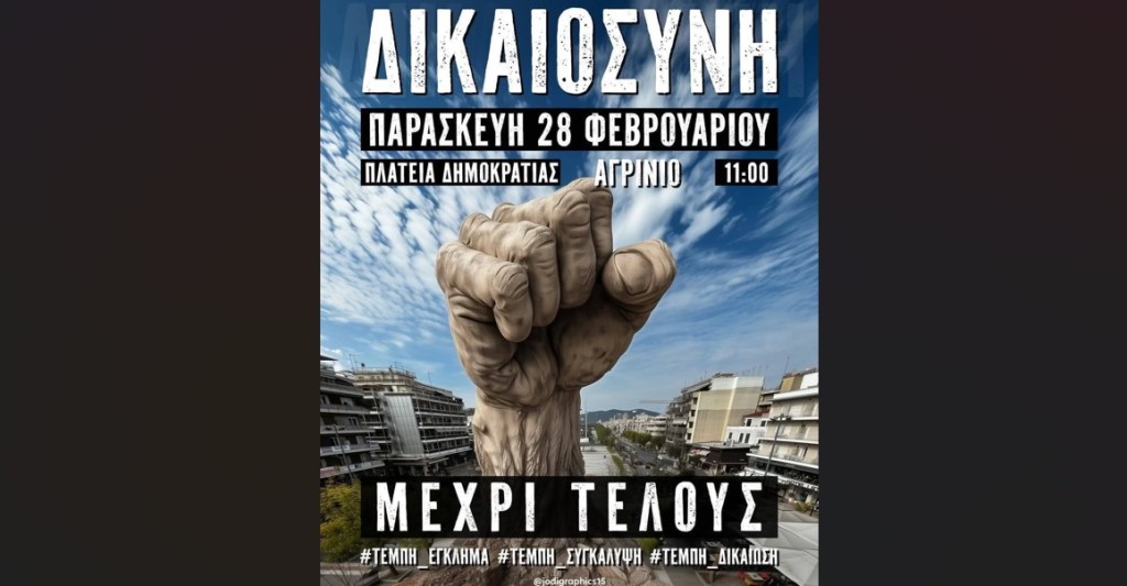 Στις 28 Φεβρουαρίου, σε όλες τις μεγάλες πόλεις της Αιτωλοακαρνανίας, πραγματοποιούνται μαζικές συγκεντρώσεις διαμαρτυρίας για το πολύνεκρο δυστύχημα των Τεμπών. Ένα χρόνο μετά, οι 57 νεκροί ζητούν δικαίωση και η κοινωνία απαιτεί απαντήσεις.