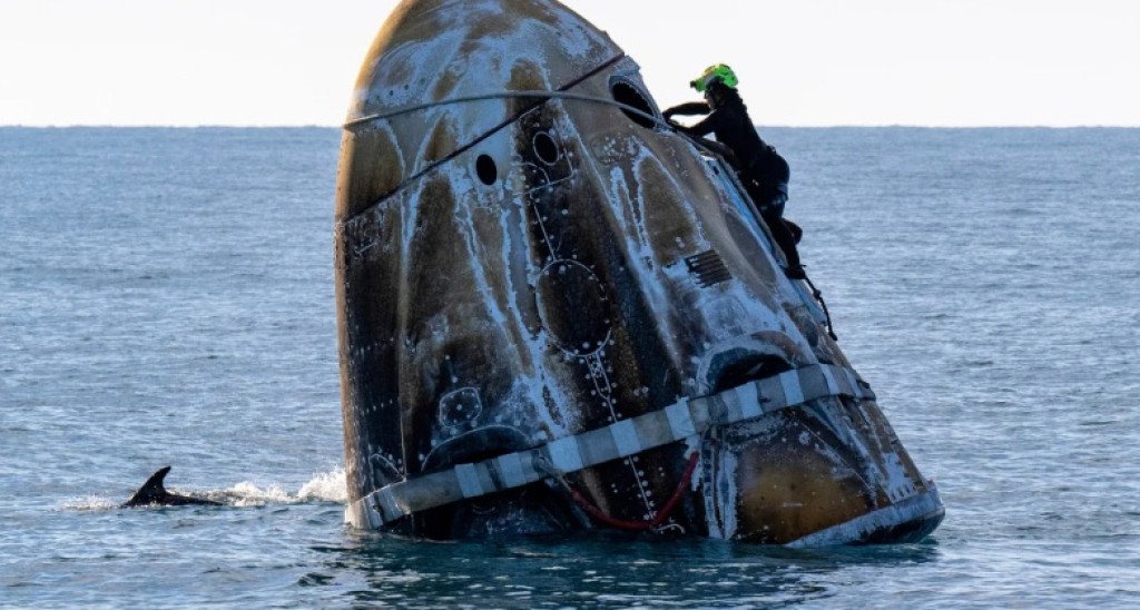 Όλος ο κόσμος παρακολουθούσε χθες την επιστροφή των 4 αστροναυτών από τον Διεθνή Διαστημικό Σταθμό, ωστόσο ένα κοπάδι από δελφίνια είχε «πρώτη θέση» στην προσθαλάσσωσή τους.