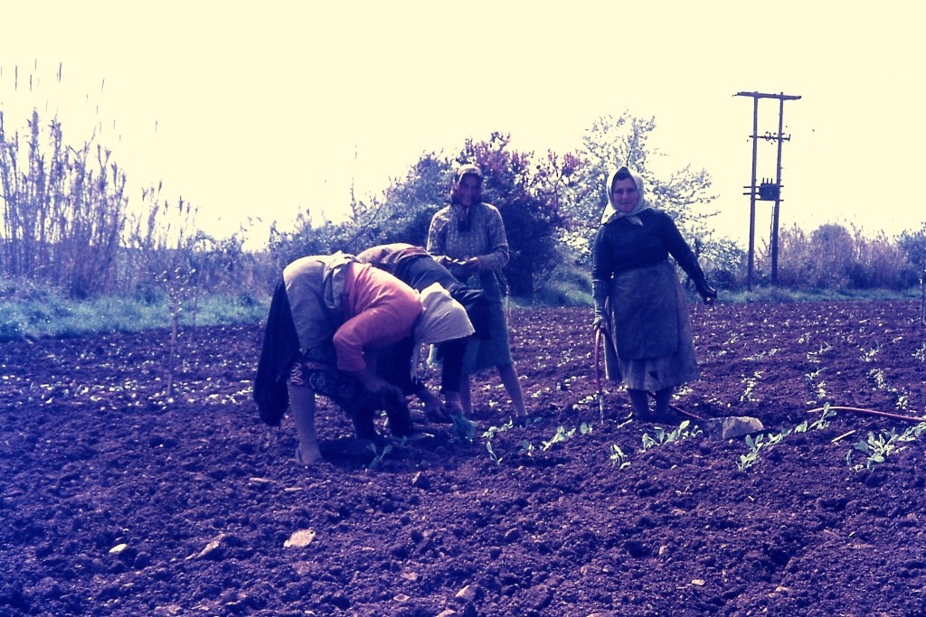 Οι άνδρες συμμετείχαν με την ύγρανση των αυλακιών που φυτεύονταν τα νεαρών φυτά και με το πότισμά τους στη συνέχεια...