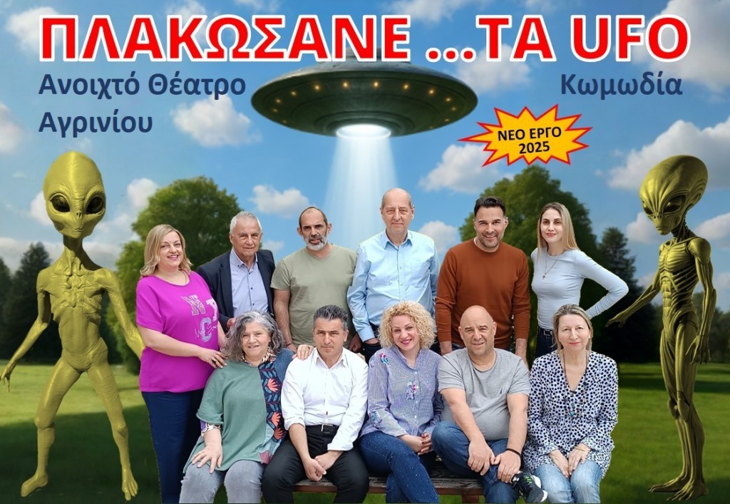 Το θεατρικό τμήμα του Ανοιχτού Θεάτρου Αγρινίου, επανέρχεται με μια νέα σατιρική επιθεώρηση ‘’Πλακώσανε …τα UFO’’ κατάλληλη για μικρούς και μεγάλους και κάνει πρεμιέρα στις 10 Μαίου στο Παπαστράτειο Μέγαρο Αγρινίου.