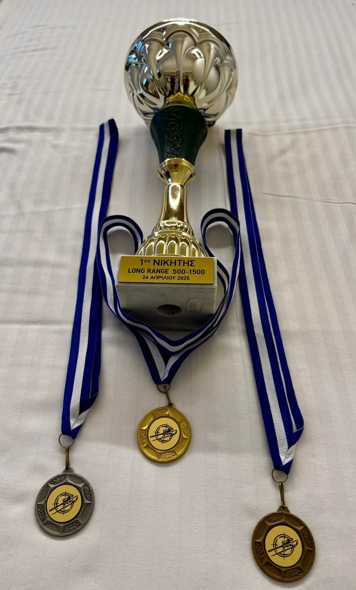 Τρίτος με το χάλκινο μετάλλιο ο αθλητής του συλλόγου μας απο το Αιτωλικό, Σιαδήμας Κωνσταντίνος, με τελικό στόχο τα 1065 μέτρα,δεύτερος με το ασημένιο μετάλλιο ο Παππάς Σωκράτης του σκοπευτικού ομίλου Καρδίτσας στα 1065 μέτρα και πρώτος με το χρυσό μετάλλιο ο Χεργκελετζής Αθανάσιος του σκοπευτικού ομίλου Ελίτ Αττικής με 4 στις 5 βολές στα 1380 μέτρα. Συγχαρητήρια στους αθλητές και στους διοργανωτές.