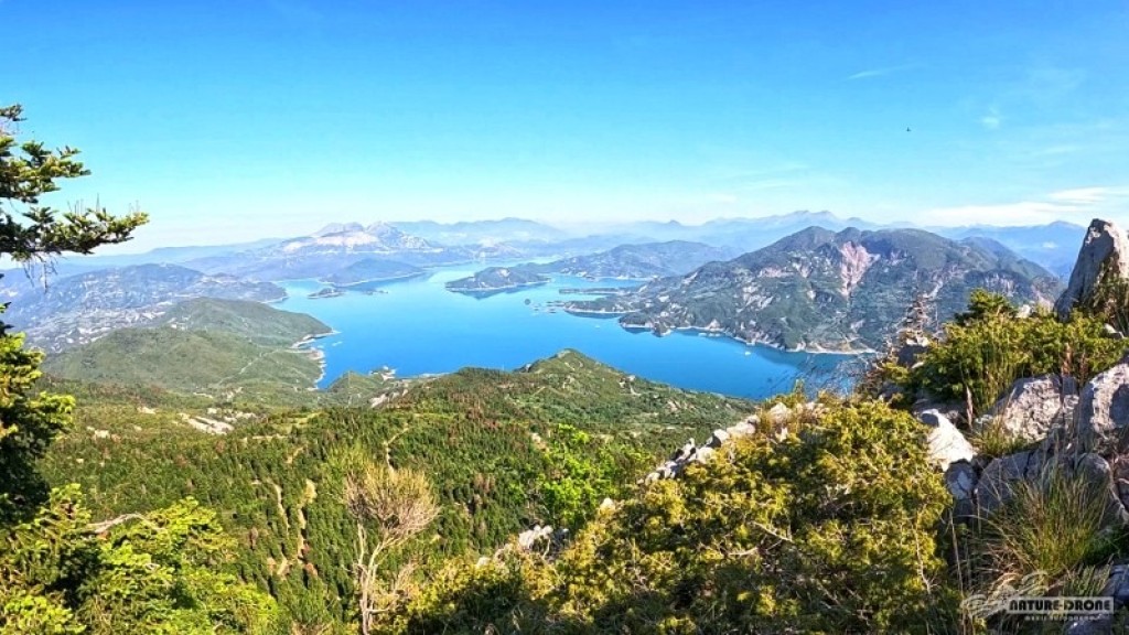 Φτάνοντας στο μεγαλύτερο μπαλκόνι του μονοπατιού, η θέα προς τη λίμνη είναι μοναδική, ενώ πίσω εντυπωσιάζουν οι κορυφές των Αγράφων και στο βάθος δεξιά τα Τζουμέρκα, τα Αθαμανικά Όρη και οι κορυφές των Τρικάλων (Αυγό, Μαρόσα και Λουπάτα). Κοιτάζοντας ανατολικά φαίνεται το Βελούχι.