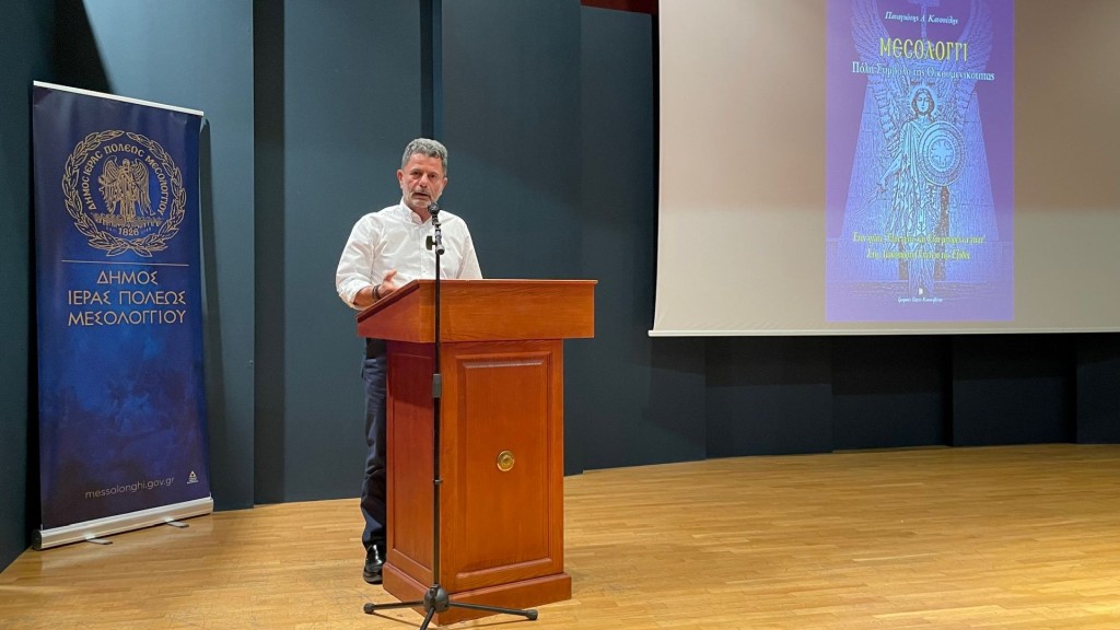 Μεγάλη επιτυχία με σημαντική προσέλευση πολιτών, σημείωσε η παρουσίαση του νέου βιβλίου του Παναγιώτη Κατσούλη με τίτλο «Μεσολόγγι: Πόλη Σύμβολο της Οικουμενικότητας», απόψε Τετάρτη 4 Ιουνίου 2025, στο Αμφιθέατρο της Περιφερειακής Ενότητας Αιτωλοακαρνανίας, στην Ιερά Πόλη Μεσολογγίου.