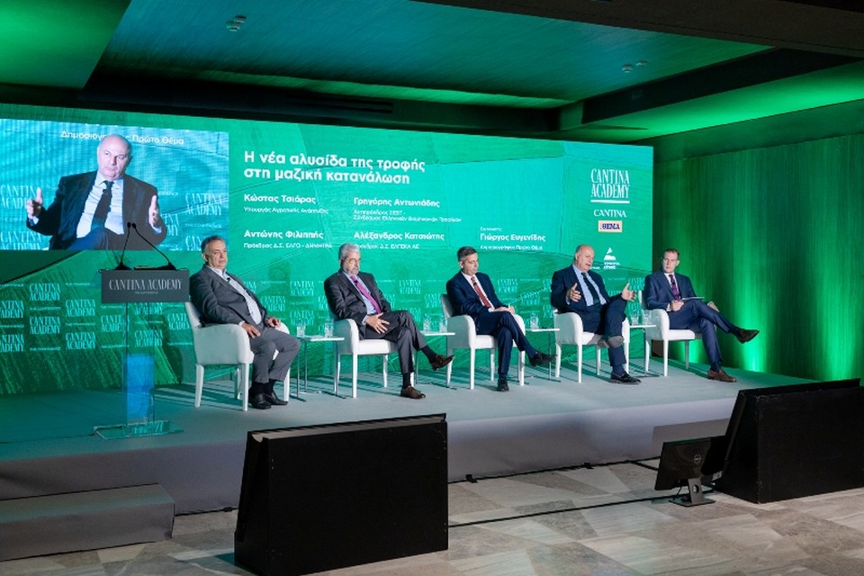 Στο πάνελ, «Η νέα αλυσίδα της τροφής στη μαζική κατανάλωση» συμμετείχαν ο Γρηγόρης Αντωνιάδης, Αντιπρόεδρος Συνδέσμου Ελληνικών Βιομηχανιών Τροφίμων (ΣΕΒΤ), και ο Αλέξανδρος Κατσιώτης, Πρόεδρος ΕΛΓΕΚΑ. Τη συζήτηση συντόνισε ο δημοσιογράφος Γιώργος Ευγενίδης.