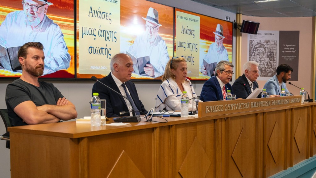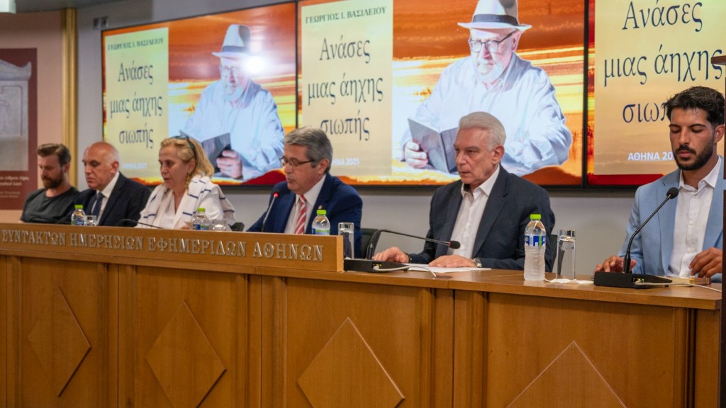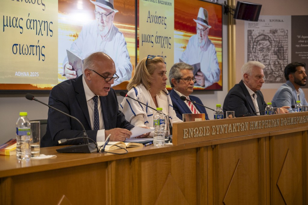 Στην κατάμεστη αίθουσα «Γεώργιος Καράντζας» της ΕΣΗΕΑ, πραγματοποιήθηκε την Τετάρτη, 4 Ιουνίου 2025, η παρουσίαση του βιβλίου «Ανάσες μιας άηχης σιωπής» του αγρινιώτη δημοσιογράφου και γνωμικογράφου, Γιώργου Ι. Βασιλείου, Υπευθύνου Τύπου της Ιεράς Συνόδου της Εκκλησίας της Ελλάδος.