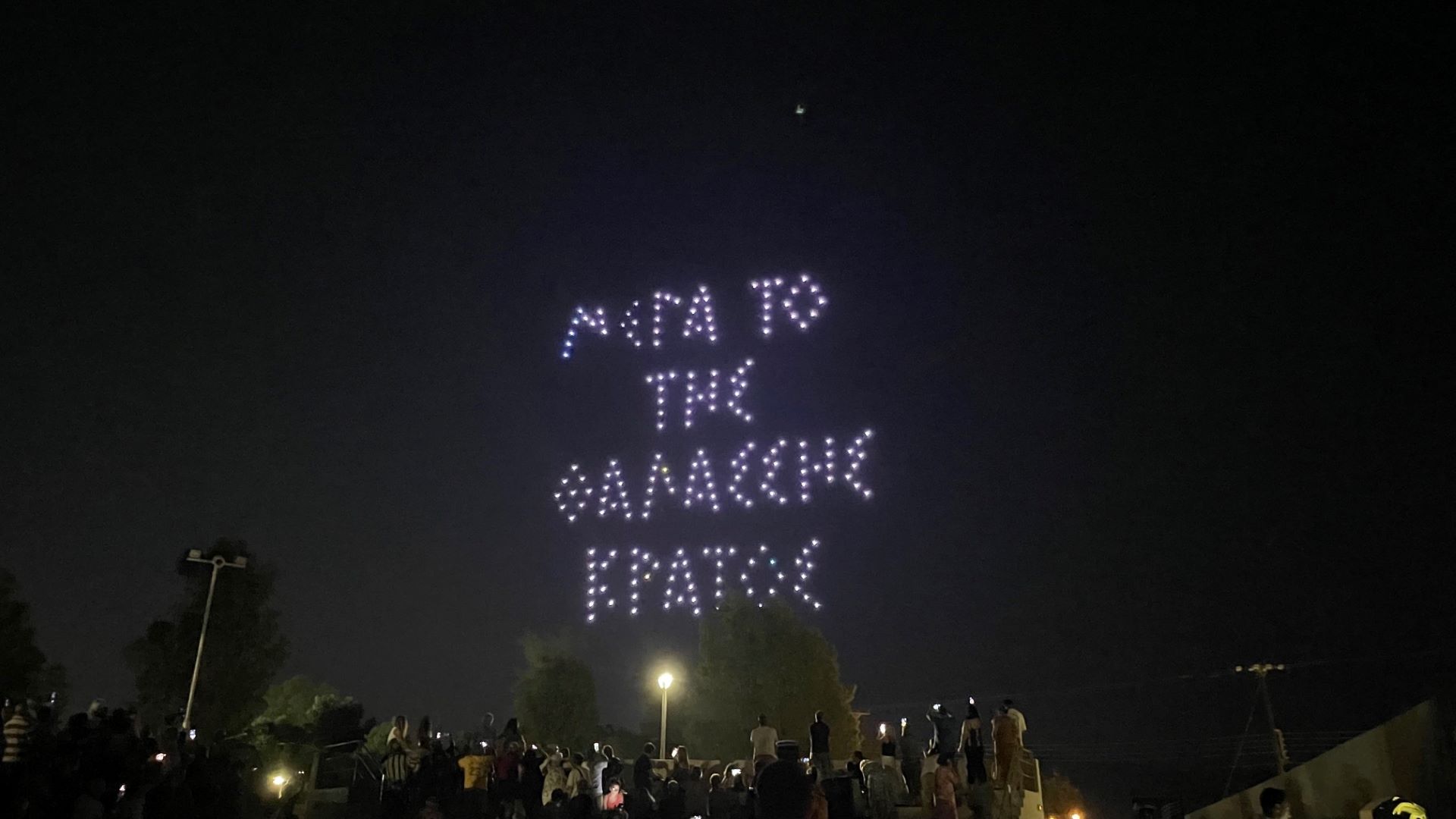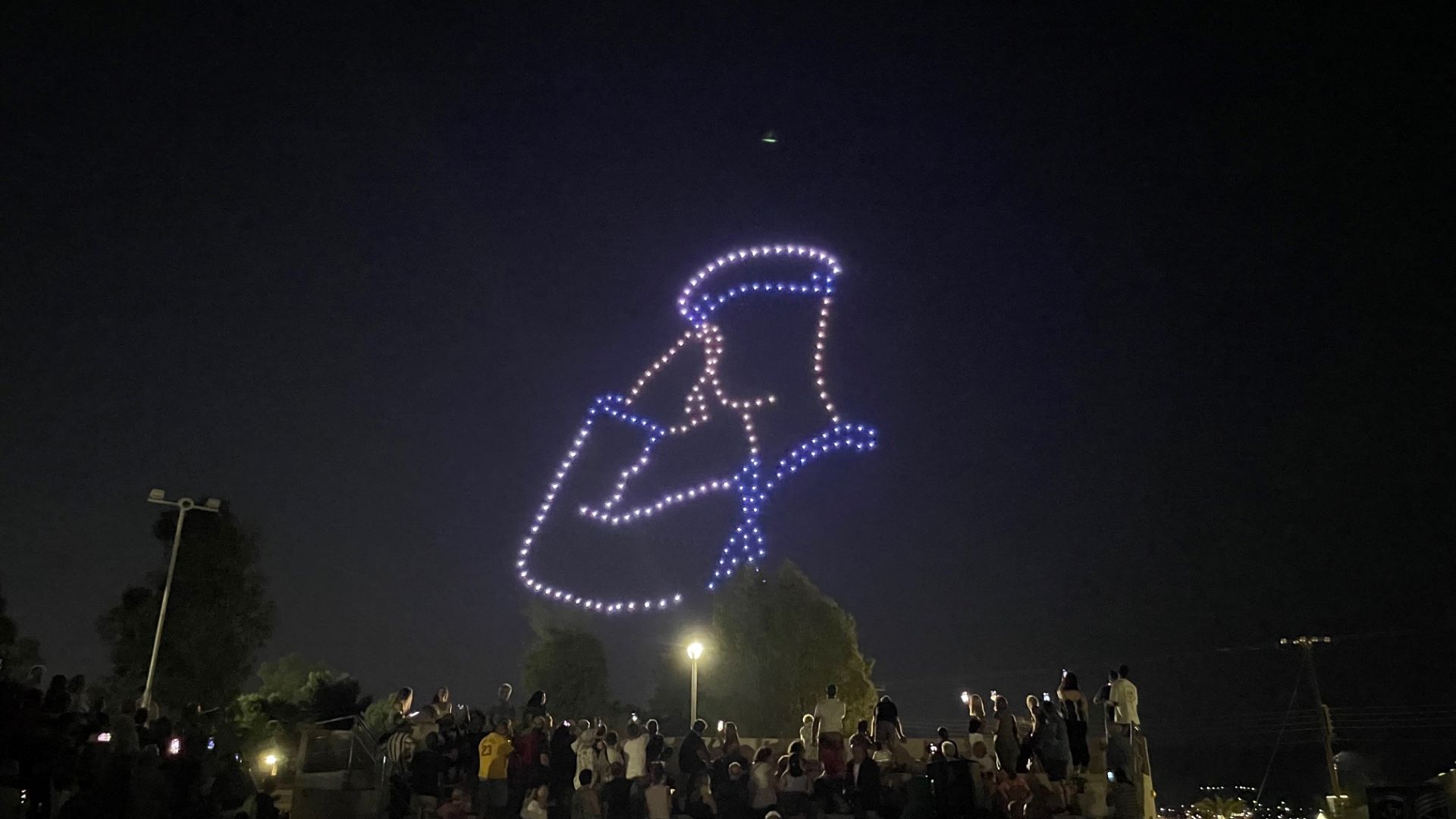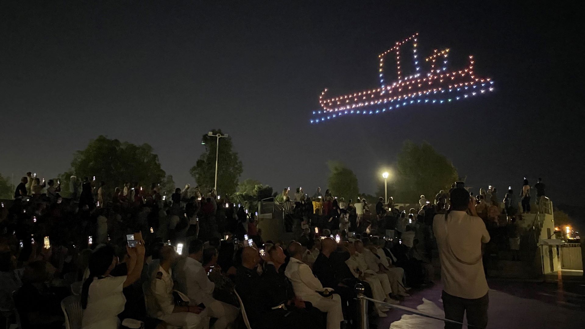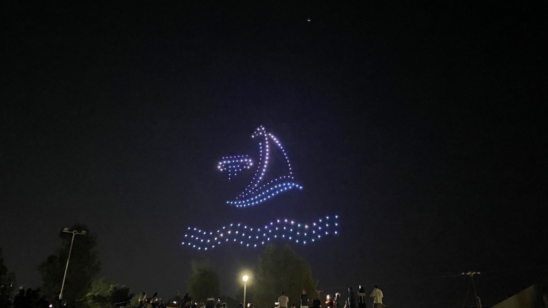 Παράλληλα με το μουσικό κομμάτι όμως, μια έκπληξη περίμενε το κοινό που είχε γεμίσει το θεατράκι, καθώς ξαφνικά τα φώτα έσβησαν κι εκείνη την ώρα φάνηκαν στον ουρανό εκατοντάδες drones τα οποία σχημάτισαν με την κίνηση και τον φωτισμό τους εντυπωσιακές εικόνες στον νυχτερινό ουρανό, προκαλώντας τον θαυμασμό των παραβρισκόμενων, πολλοί από τους οποίους σήκωσαν τα κινητά τους τηλέφωνα για να απαθανατίσουν το θέαμα.