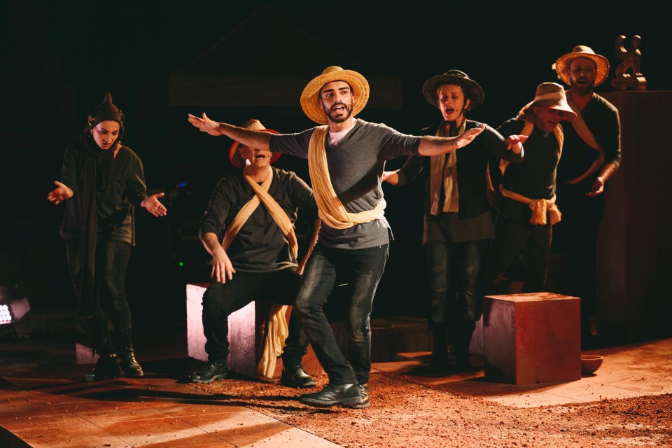 Επί σκηνής οκτώ ηθοποιοί ευρύτατης ερμηνευτικής γκάμας, τέσσερις γυναίκες και τέσσερις άντρες από τρεις γενιές, ερμηνεύουν, χορεύουν και τραγουδούν: η σπουδαία κυρία του θεάτρου Αννίτα Σαντοριναίου, που φέρει το ήθος της θρυλικής εποχής του Κουν, η Στέλα Φυρογένη, ο Αλέξανδρος Μπουρδούμης, ο Χάρης Πισίας και η Νιόβη Χαραλάμπους, ηθοποιοί με μακρά και επιτυχημένη πορεία στο θέατρο, αλλά και οι νεότεροι Χρήστος Γκρόζος, Λουκάς Προκοπίου και Μαρία Τσιάκκα.