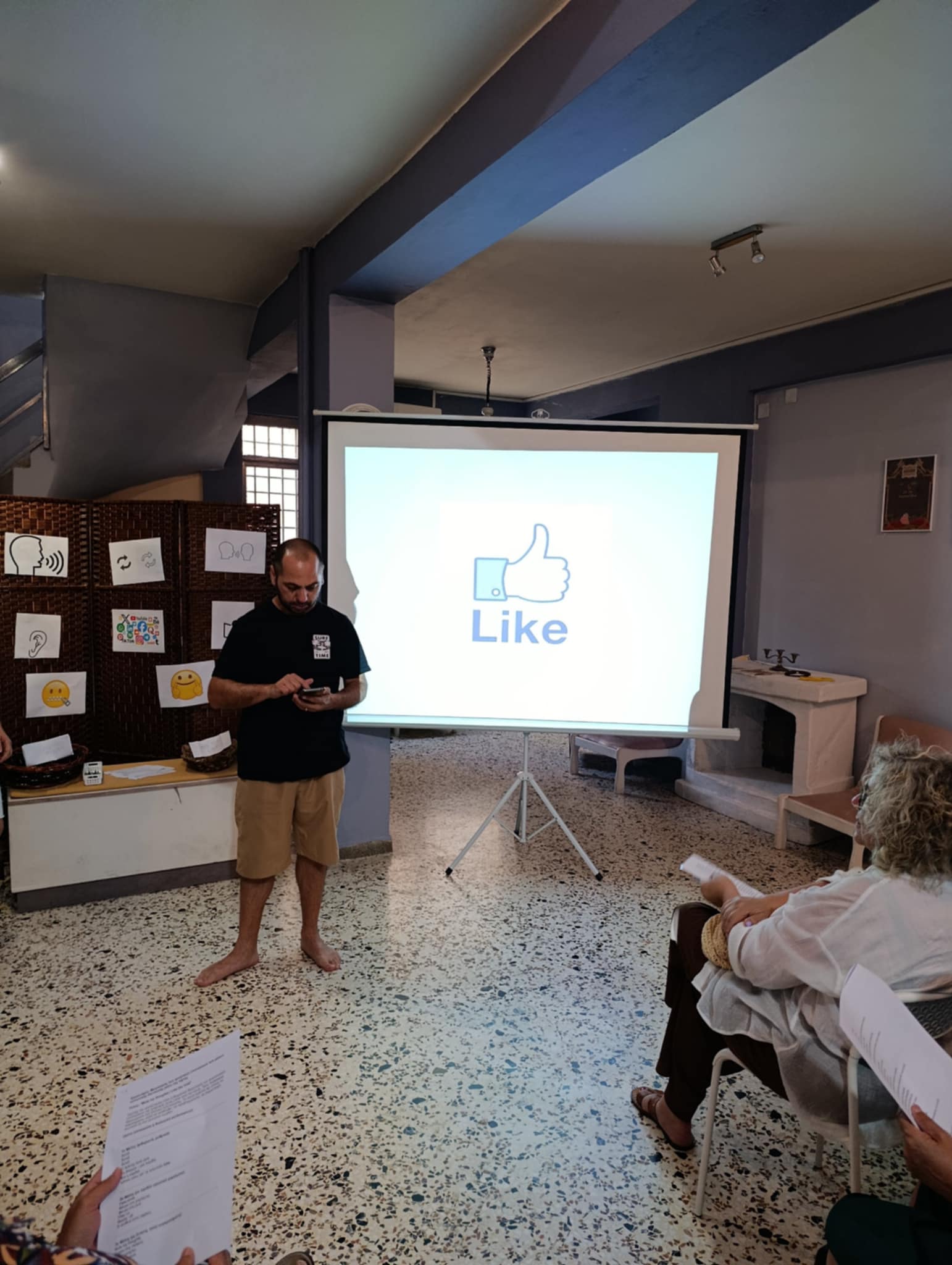 Η συνάντηση πραγματοποιήθηκε σε ένα περιβάλλον ζωντανής δημιουργίας και ασφαλούς έκφρασης, όπου οι συμμετέχοντες — ενήλικες εκπαιδευτικοί και επαγγελματίες της εκπαίδευσης — επεξεργάστηκαν, μέσα από θεατρικές ασκήσεις, μουσική και σωματικό αυτοσχεδιασμό, τις επιδράσεις των κοινωνικών μέσων στην καθημερινότητα και την ψυχοσυναισθηματική τους κατάσταση.