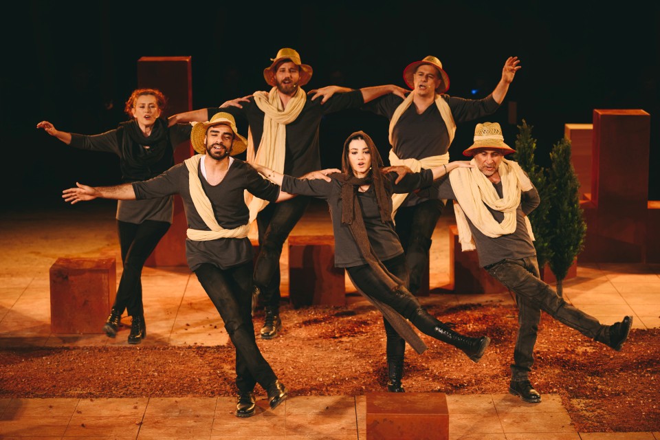 Επί σκηνής οκτώ ηθοποιοί ευρύτατης ερμηνευτικής γκάμας, τέσσερις γυναίκες και τέσσερις άντρες από τρεις γενιές, ερμηνεύουν, χορεύουν και τραγουδούν: η σπουδαία κυρία του θεάτρου Αννίτα Σαντοριναίου, που φέρει το ήθος της θρυλικής εποχής του Κουν, η Στέλα Φυρογένη, ο Αλέξανδρος Μπουρδούμης, ο Χάρης Πισίας και η Νιόβη Χαραλάμπους, ηθοποιοί με μακρά και επιτυχημένη πορεία στο θέατρο, αλλά και οι νεότεροι Χρήστος Γκρόζος, Λουκάς Προκοπίου και Μαρία Τσιάκκα.