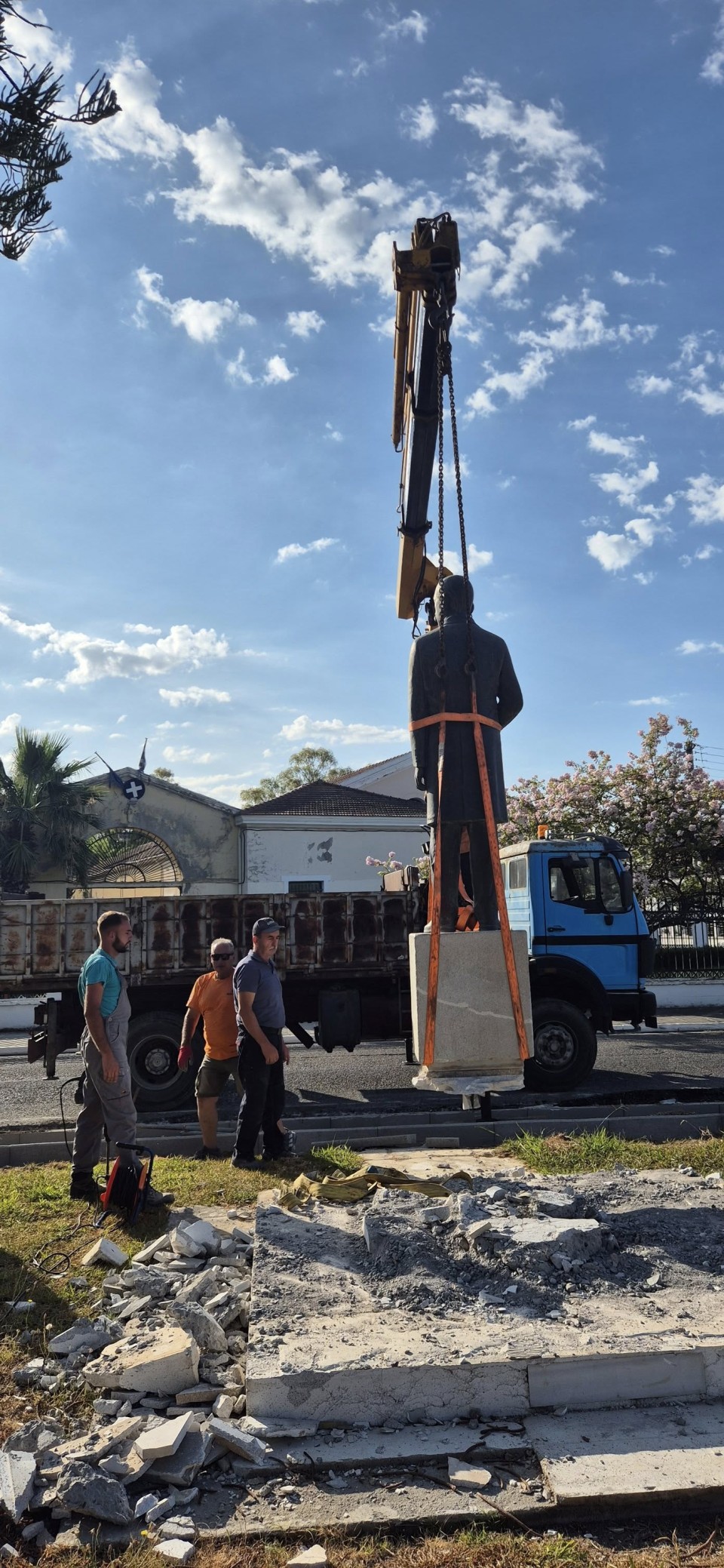 Η τοποθέτηση του μπρούτζινου ανδριάντα πραγματοποιήθηκε από συνεργείο του Δήμου Ιερής Πόλης Μεσολογγίου, σηματοδοτώντας μια ουσιαστική παρέμβαση στην αισθητική και ιστορική αναβάθμιση ενός κομβικού σημείου του αστικού ιστού.