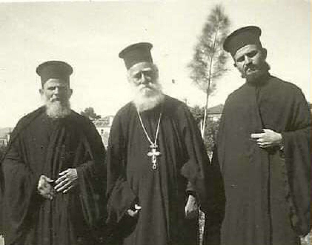 π. Ελευθέριος Κατερινόπουλος, π. Απόστολος Φαφούτης και π. Βασίλειος Διαμαντής. Αρχείο Κωνσταντίνου Διαμαντή (Από το βιβλίο Κ. Αρκουμάνη "Αρχιμανδρίτης Απόστολος Φαφούτης. Η ζωή και το έργο του'', Αγρίνιο: εκδ. Δήμος Αγρινίου, 2023)