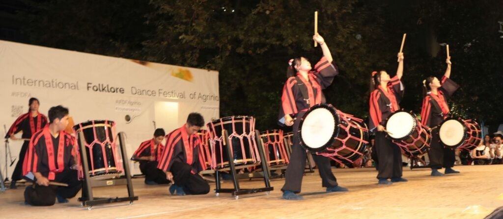 Ακολούθησε το «πολυαναμενόμενο» συγκρότημα με τα τύμπανα της Ιαπωνίας, που πριν δυο χρόνια ξαναήρθαν στο Αγρίνιο-τον Αύγουστο του 2023-και οι Αγρινιώτες τους είχαν συμπαθήσει εξαιρετικά για την δεξιοτεχνία στα όργανά τους και για τις πολλές πρωτοτυπίες τους, όπως την ανάμιξη τους με το κοινό της πλατείας.