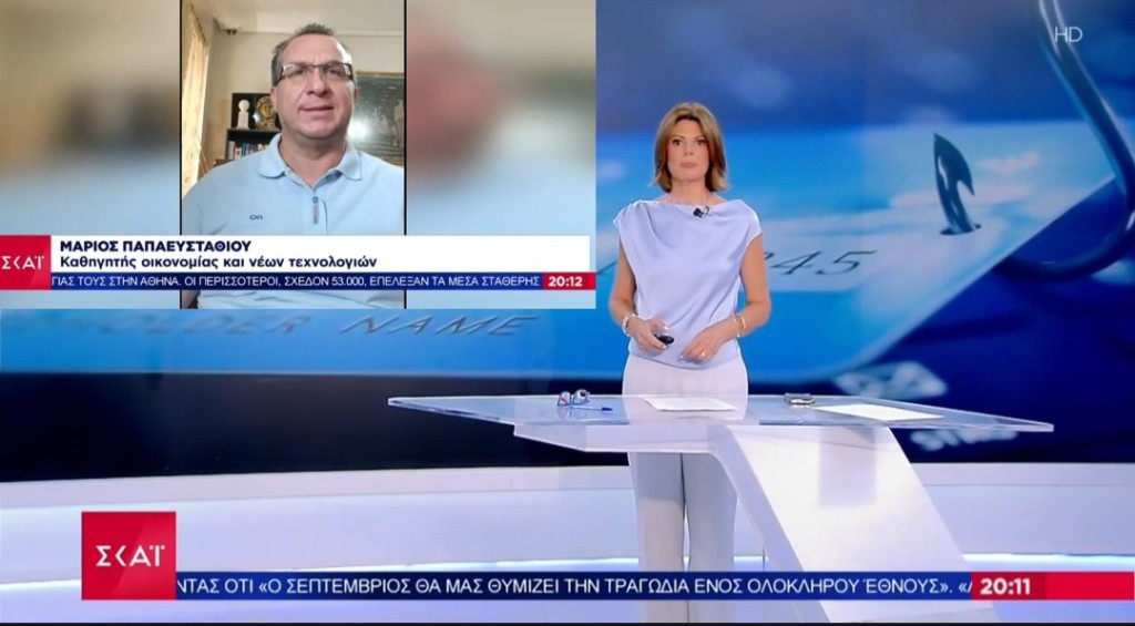 Ο καθηγητής Οικονομίας & Νέων Τεχνολογιών Μάριος Παπαευσταθίου Καλεσμένος στο Κεντρικό Δελτίο Ειδήσεων της τηλεόρασης του ΣΚΑΙ στο επίκεντρο του προβλήματος της Ηλεκτρονικής απάτης , προειδοποιεί για τον κίνδυνο.