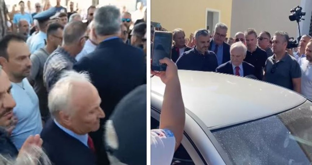 Σύμφωνα με μαρτυρίες, εκτοξεύθηκαν αντικείμενα, όπως καφέδες και μπουκάλια με νερό, ενώ ακούστηκαν συνθήματα που τον χαρακτήριζαν ανεπιθύμητο.
