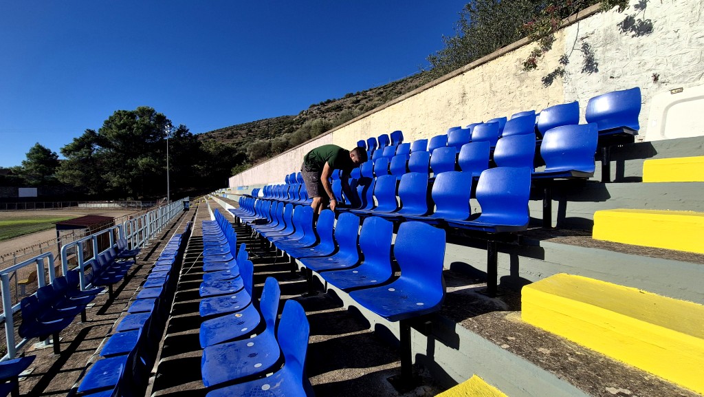 Τοποθετήθηκαν στις κερκίδες του Κλειστού Γυμναστηρίου Αμφιλοχίας και του Ανοιχτού Δημοτικού Σταδίου τα καθίσματα που δώρισε στον Δήμο Αμφιλοχίας η ΑΕΚ BC από τη SUNEL Arena.