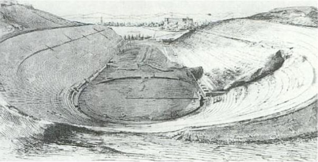 Οι χόροι αθλητισμού τον 19ο αιώνα αφορούσαν τα αθλήματα του στίβου κυρίως τα οποία μετέπειτα αποτέλεσαν τον πυρήνα των πρώτων Ολυμπιακών Αγώνων του 1896. Το 1890 το Αγρίνιο ήταν πρωτοπόρος σε μια τέτοια διοργάνωση, τη στιγμή που η κατασκευή του Καλλιμάρμαρου Σταδίου στην Αθήνα δεν είχε ολοκληρωθεί όπως βλέπετε στην επαραπάνω εικόνα. Μαθαίνουμε λοιπόν από την εφημερίδα “Το Αγρίνιο” ότι τον Μάρτιο του 1890 στα πλαίσια της γιορτής της “Εθνικής Ανεξαρτησίας” δηλαδή για τη σημερινή επέτειο της 25ης Μαρτίου σημαιοστολίστηκε η πόλη και τοποθετήθηκαν μέχρι και αψίδες για να γίνουν προπαρασκευαστικοί αγώνες για τους διεθνείς Ολυμπιακούς που τελικά έγιναν 6 χρόνια αργότερα στην Αθήνα. Εκείνο το διάστημα είχαν τελεστεί οι Ζάππειες Ολυμπιάδες (ή Ολύμπια) που χρηματοδοτήθηκαν από τον Ευάγγελο Ζάππα και διεξήχθησαν τα έτη 1859, 1870, 1875 και 1888-1889.Μάλιστα τα Ολύμπια του 1870 στο ανακαινισμένο -τότε- Παναθηναϊκό Στάδιο συγκέντρωσαν κοινό 30.000 θεατών. Εν προκειμένω στους συγκεκριμένους “προολυμπιακούς αγώνες” του Αγρινίου διοργανωτής ήταν ένας ιερέας, ο Κωνσταντίνος Στεροδήμας.