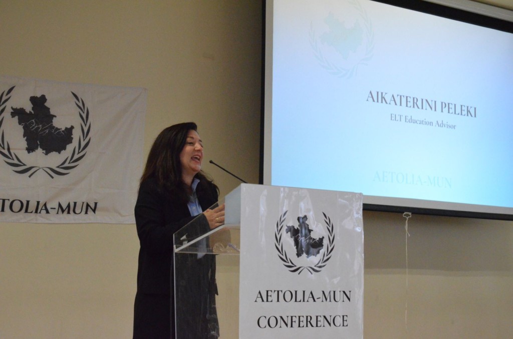 Η σύμβουλος εκπαίδευσης κα Αικατερίνη Πελέκη, μέσα από την ομιλία της, ανέδειξε τρεις βασικούς άξονες: τη σημασία του να παραμένουμε όλοι μαθητές και μαθήτριες μέσα στη διαδικασία της μάθησης, τη διαδρομή του MUN (Model United Nations) από την Αμερική ως την Ευρώπη και από την τριτοβάθμια στη δευτεροβάθμια εκπαίδευση, καθώς και τη μοναδική βιωματική εμπειρία που προσφέρει η προετοιμασία του θεσμού — τόσο για τους μαθητές όσο και για τους εκπαιδευτικούς.