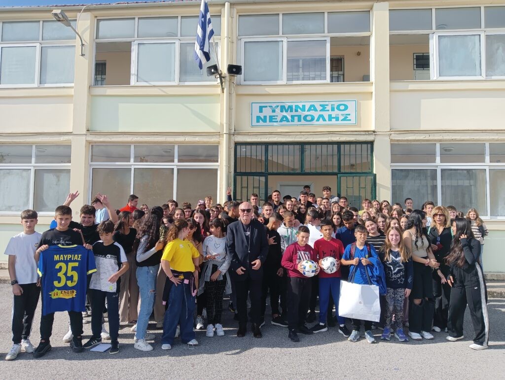 O γενικός αρχηγός και μέλη της ομάδας ποδοσφαίρου του Παναιτωλικού πραγματοποίησαν επίσκεψη στο Γυμνάσιο Νεάπολης την Τρίτη 21 Οκτωβρίου.